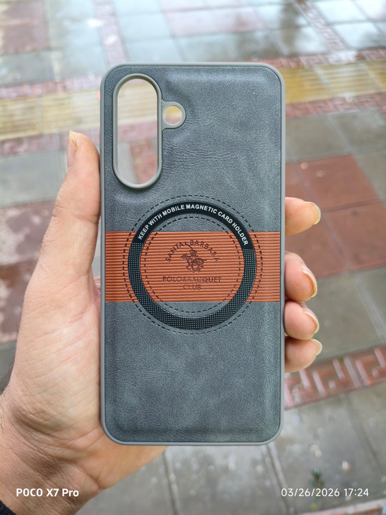 قاب Santa Barbara چرمی مگسیف فعال گوشی Samsung A17 رنگ خاکستری